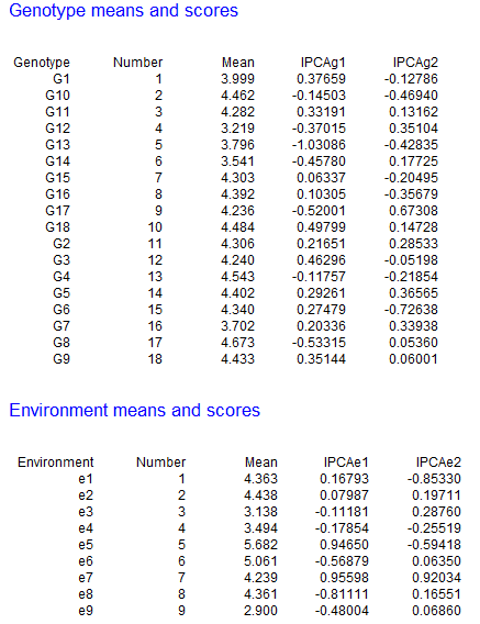 现有18个品种(G1 ~ G9),9个地点(e1 ~ e9),观测值为每个品种在每个地点的BLUP值(或者平均值)。