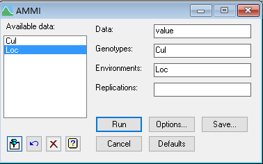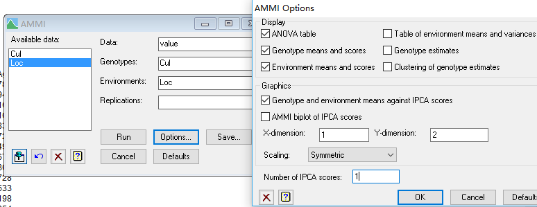 这里选择GenStat的AMMI模型进行分析,注意,单点数据中没有重复数据。如果有重复数据,可以放在Replications一栏