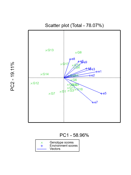 GGE biplot在Genstat中是基于菜单操作的,简单方便,因此在多环境试验中应用较多。R语言中的GGEBiplot包也可以做GGE分析,但是它不能分析缺失数据,而缺失数据在农业生成中经常遇到,因此GGE双标图更多的使用GenStat进行分析。